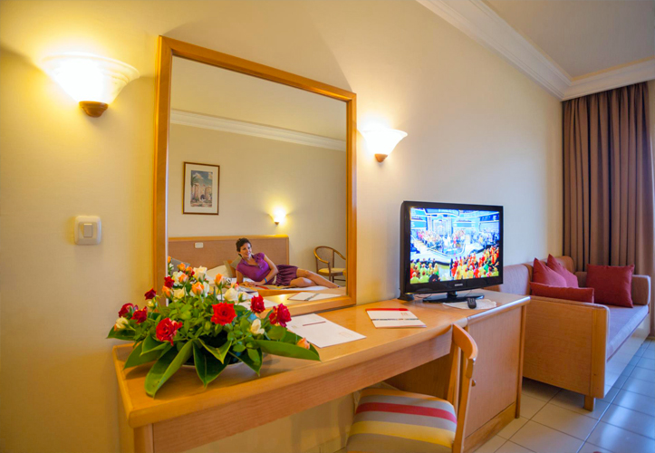 Les chambres conviviales disposent d'une télévision à écran plat, d'un minibar, d'un coin salon et d'un balcon ou d'une terrasse. Certaines offrent une vue sur le jardin ou la mer, tandis que les logements surclassés comprennent un espace de vie.