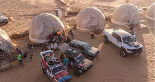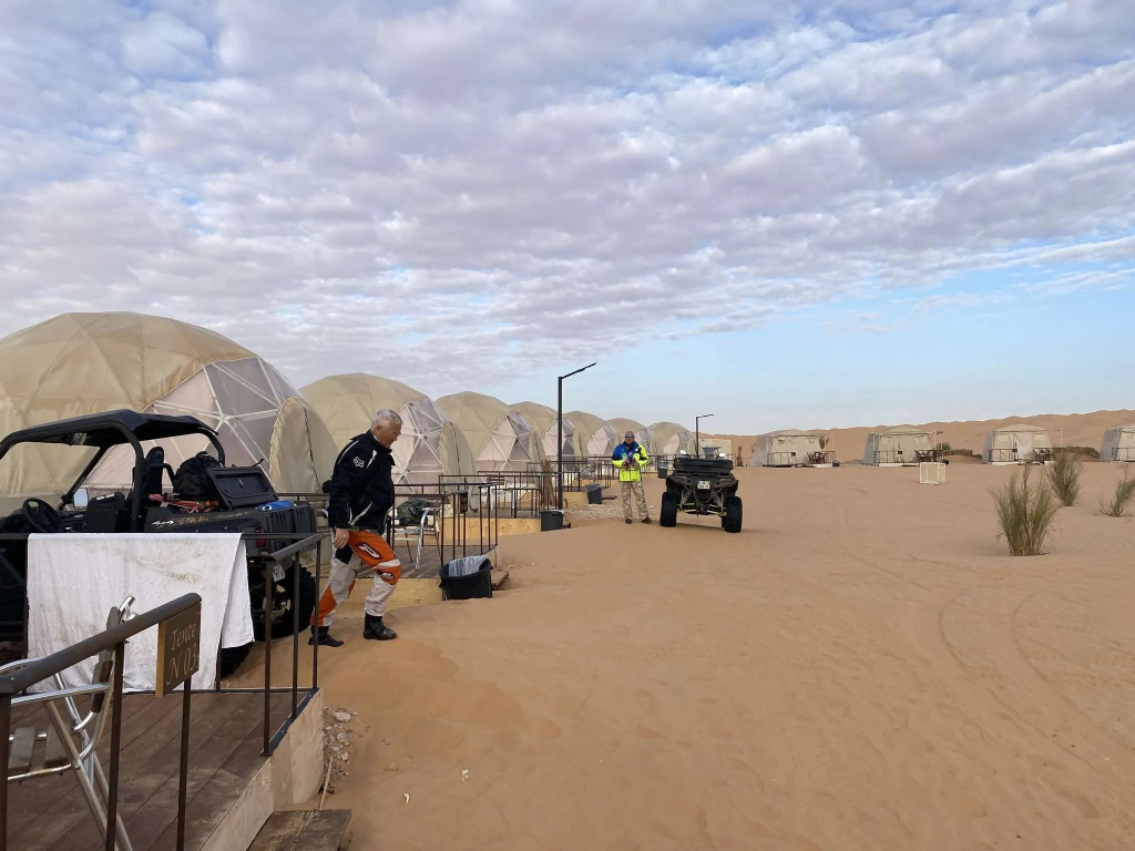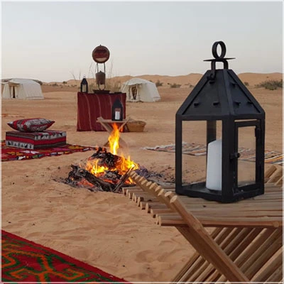 Le camp de Tiniri estun campement de luxe dans le désert du Sahara tunisien, près de Douz, offrant un mélange de style bédouin et de confort moderne avec des tentes spacieuses (nomades, en toile, dômes de luxe) pour de vastes expériences dans le désert, des repas et des activités comme des promenades à dos de chameau et des excursions en 4x4, en mettant l'accent sur la beauté sereine, les nuits étoilées et l'hospitalité authentique du désert.